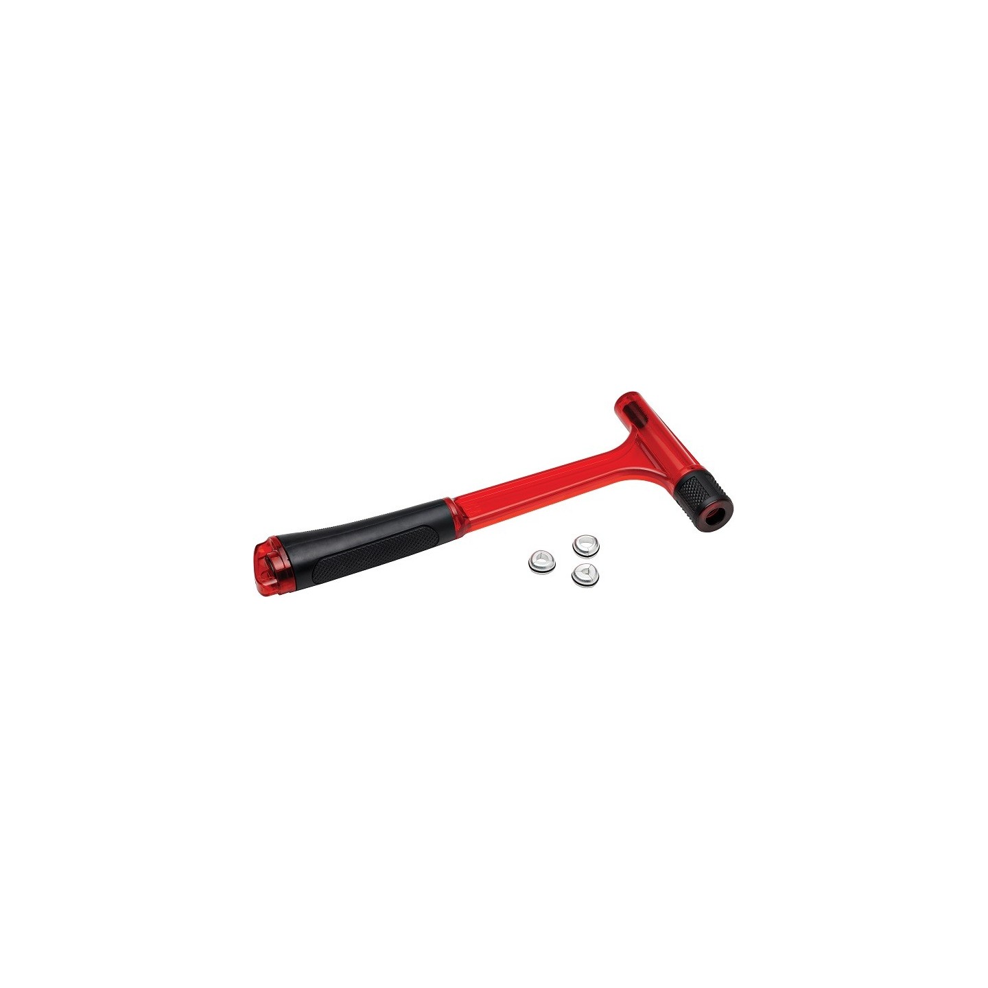 Trois collets fournis permettent de travailler des cartouches de calibre .22 à .45. Les collets peuvent être rangés dans le manche du marteau.
