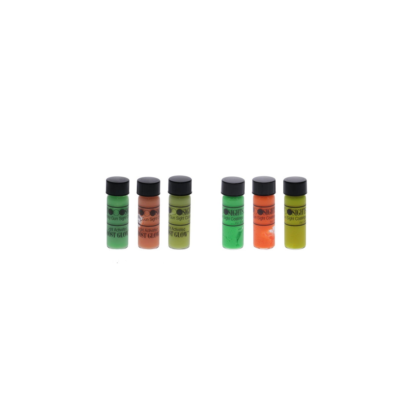 3 revêtements de visée haute visibilité (vert, orange et jaune)/3 revêtements de visée luminescents activés par la lumière (jaune, orange et vert)