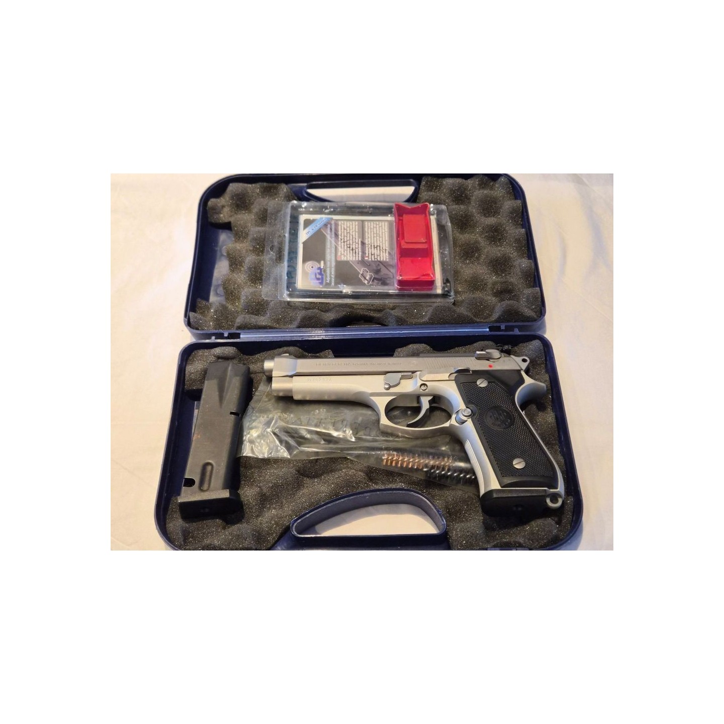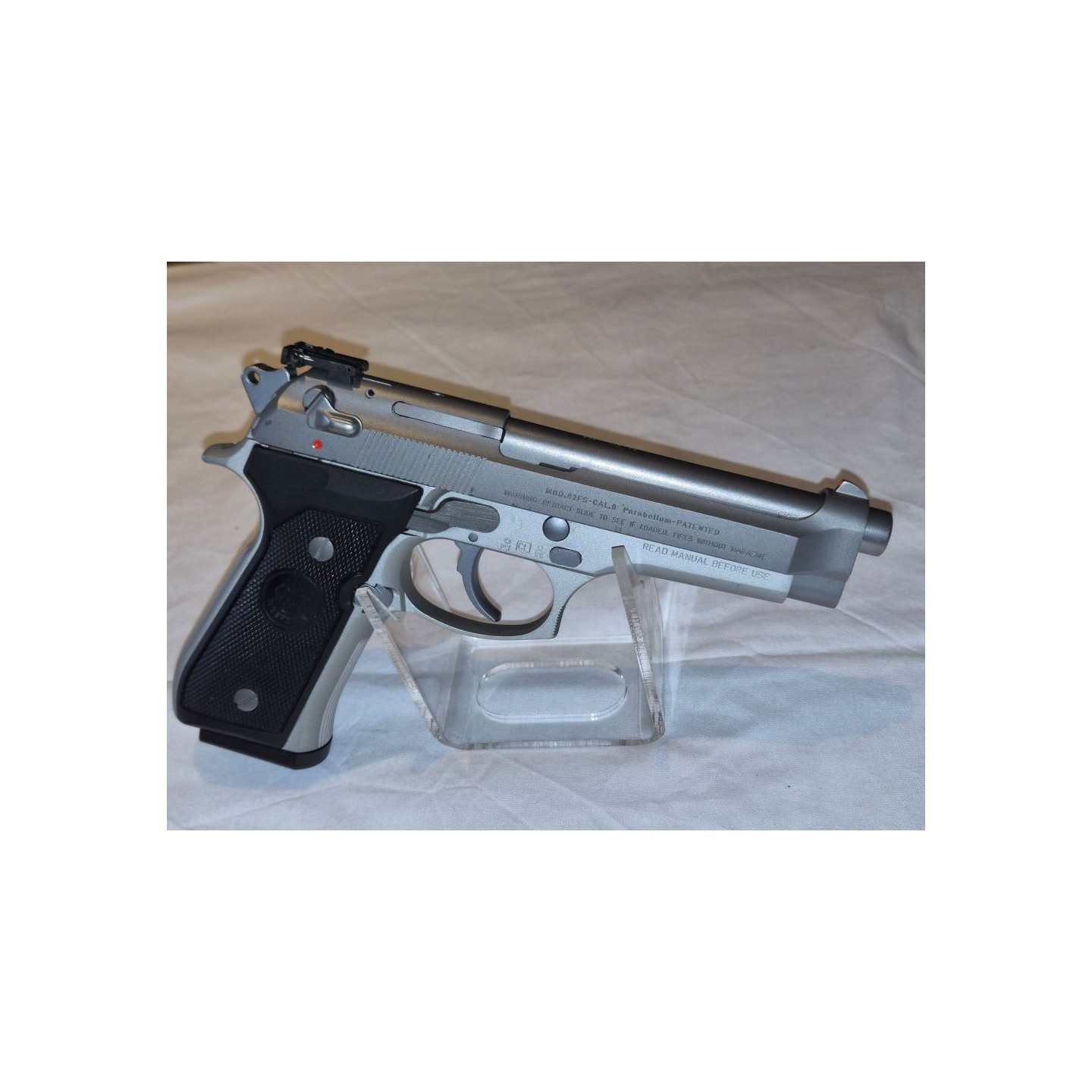 La glissière, le canon et certaines autres pièces maîtresses de ce modèle (sûreté, détente, verrou de glissière etc. . . ) ainsi que des pièces intérieures sont en acier inoxydable. La carcasse en alliage est anodisée de la même couleur pour s'assortir à la glissière et au canon en inox.