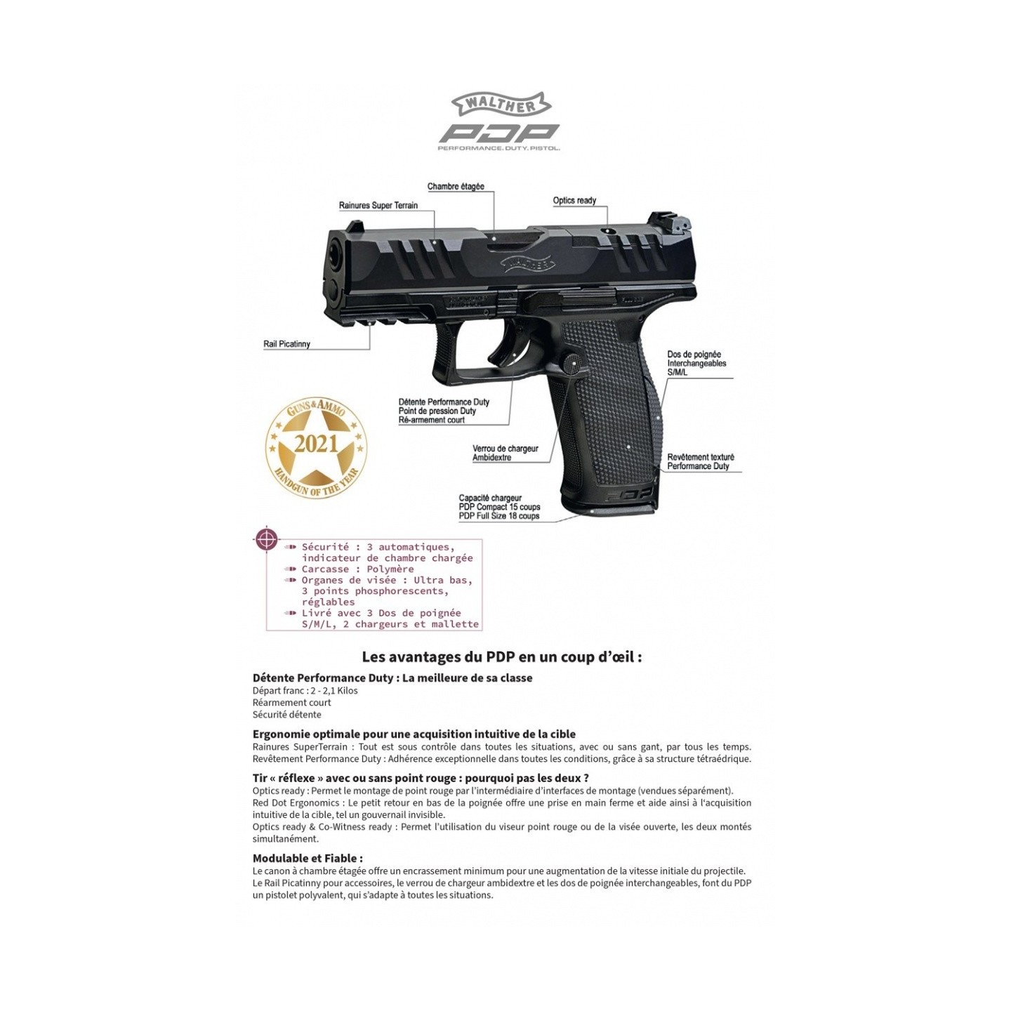 Livré avec 3 Dos de poignée S/M/L, 2 chargeurs et mallette
