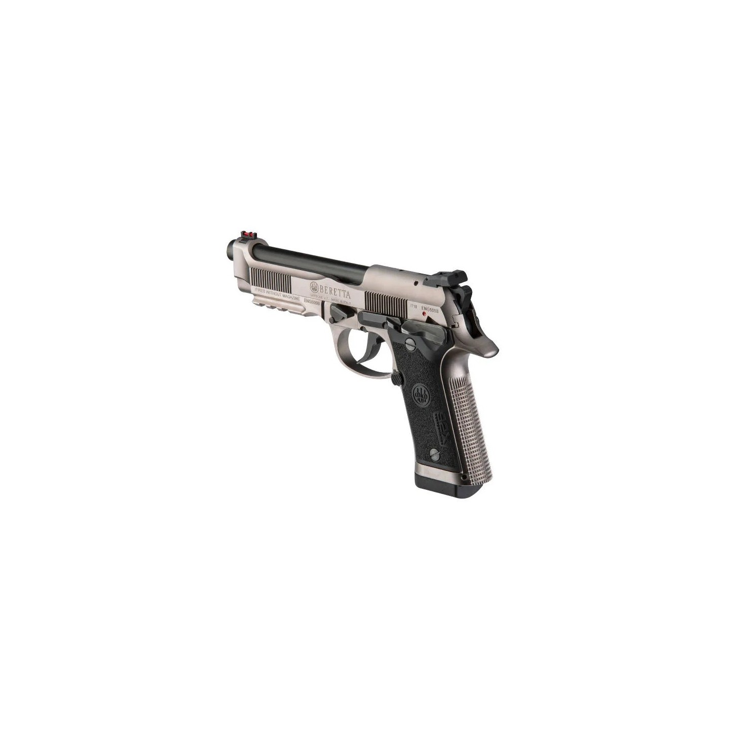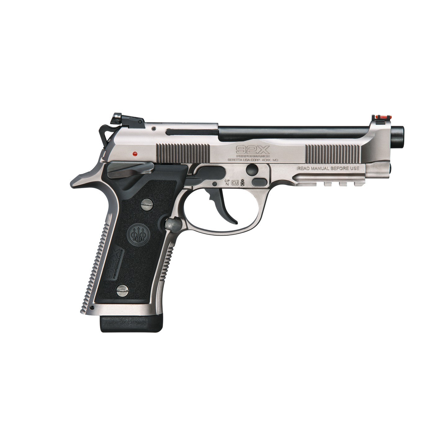 Pour rendre la percussion encore plus rapide, le 92X adopte un chien squelettisé avec ressort de compétition. Grâce au système de détente Extreme-S, en plus d'une sécurité accrue, un réarmement de la détente 40% plus court est garanti, avec un poids de détente de 1,5 kg en simple action et de 3 kg en double action. Le quadrillage à l’avant et à l’arrière de la glissière Brigadier garantissent une adhérence maximale lors du mouvement de la glissière, quelles que soient les conditions.