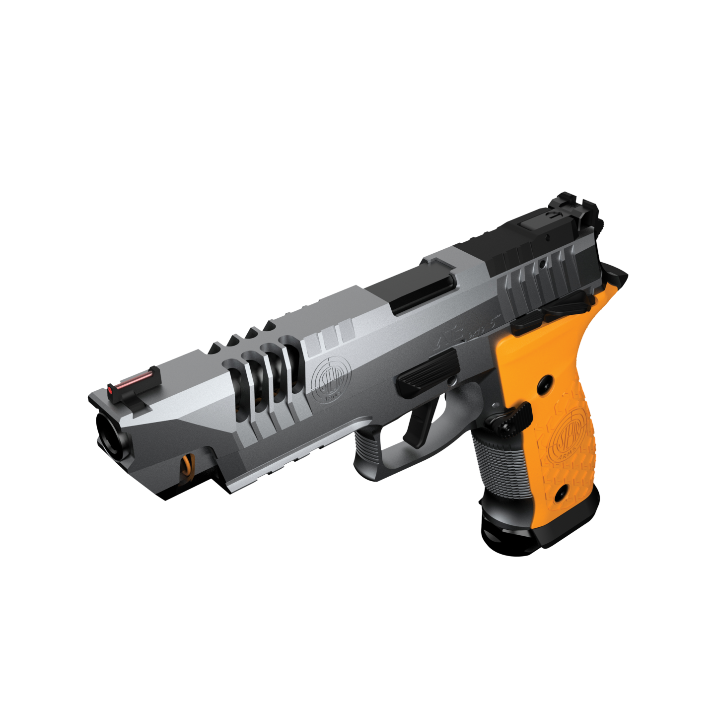 La culasse skeleton réduit le poids de l’arme et optimise le temps de fermeture, tandis que le bouton de déverrouillage du chargeur, et la sécurité manuelle accessible des deux côtés garantissent une ergonomie et un contrôle exceptionnels, quel que soit le style de tir. Les plaquettes de poignée ergonomiques imprimées en 3D en PA12 offrent un maintien confortable et stable, améliorant la précision lors de chaque session.