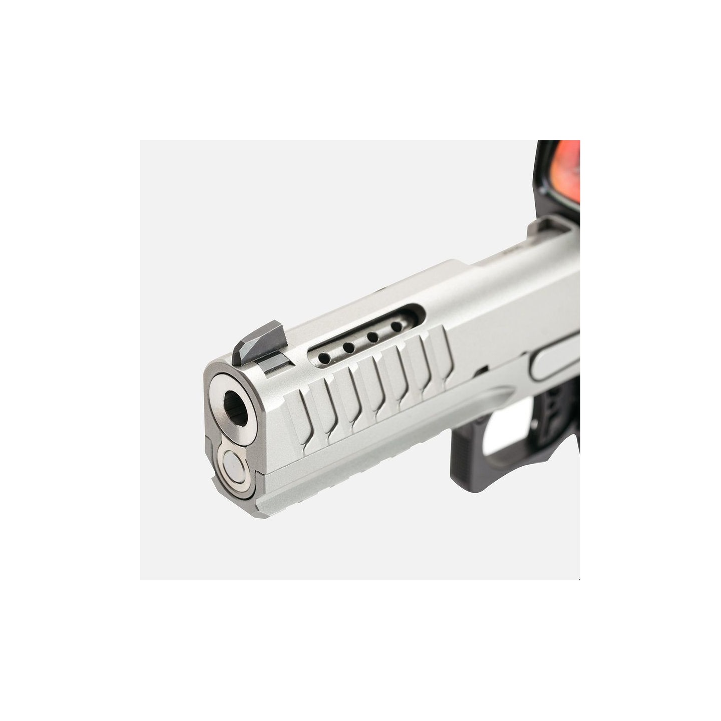 Le SAS II TAC PRO représente l'apogée de l'innovation et de la performance dans le domaine des pistolets de compétition. Doté d'une carcasse en acier robuste et résistante, ce pistolet offre une base solide et fiable pour les tireurs exigeants. Sa conception Optic Ready est une caractéristique remarquable, offrant aux tireurs la possibilité de monter facilement des points rouges avec les empreintes RMR / DPP / Holosun K & RMSc incluses dans le package. En plus de sa polyvalence optique, le SAS II TAC PRO est livré avec quatre chargeurs, offrant une capacité de charge optimale pour une performance inégalée sur le terrain. Cette généreuse provision de chargeurs permet aux tireurs de rester concentrés sur leur cible, minimisant ainsi les temps morts liés au rechargement et maximisant leur efficacité globale. Le canon du SAS II TAC PRO est équipé d'évents, qui agissent comme un compensateur pour réduire efficacement le recul et le relèvement du canon. Cette caractéristique permet des tirs plus rapides et plus précis, même lors de tirs répétés, ce qui en fait un choix idéal pour les compétitions dynamiques où la vitesse et la précision sont essentielles. En résumé, le SAS II TAC PRO est bien plus qu'un simple pistolet de compétition : c'est un outil de tir de haute performance conçu pour répondre aux exigences les plus strictes des tireurs les plus exigeants. Avec sa combinaison de fonctionnalités avancées, de fiabilité éprouvée et de polyvalence inégalée, il offre une expérience de tir incomparable sur le terrain et sur le pas de tir.
