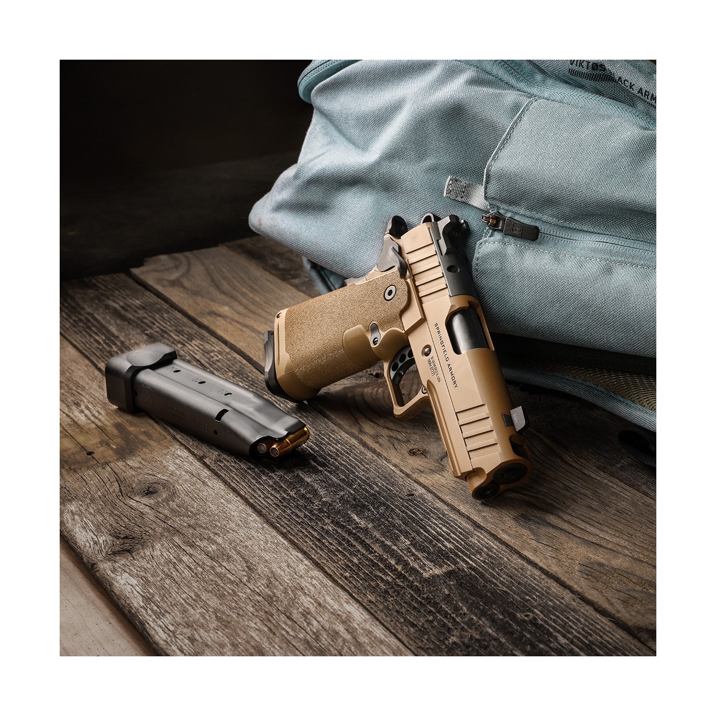 Le Prodigy de Springfield Armory reprend la plateforme du 1911 éprouvée et l’améliore avec une capacité double. Reconfiguré autour d’un chargeur en double pile, le module de prise en main en polymère du Prodigy se monte sur son cadre en acier forgé, offrant des capacités de 17+1 et 20+1. Optics ready, avec une sécurité ambidextre et un rail Picatinny, le Prodigy combine les caractéristiques les plus appréciées du 1911 avec une capacité moderne pour des performances inégalées.