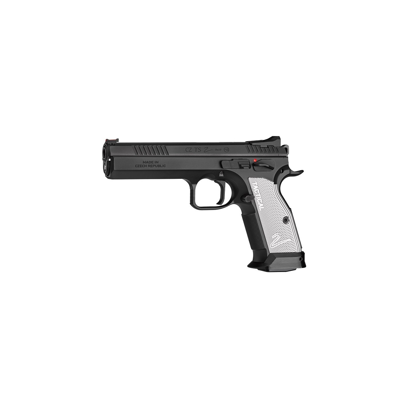 Une nouvelle génération du célèbre modèle TS pour le tir sportif de la division standard IPSC. Mécanisme de déclenchement à action unique (Simple Action) réglable avec une course courte et un réarmement minimal. Précision et durée de vie accrues grâce à l'utilisation de matériaux de haute qualité et à l'utilisation des technologies de production les plus récentes. Amélioration de la géométrie de la carcasse et la culasse pour une manipulation plus facile, plus rapide et plus fiable. Nouveau design attrayant de la culasse, de la carcasse et du marteau type sport. L'amélioration de l'ergonomie contribue à une manipulation confortable lors du tir. Un contrôle agressif assure une prise en main ferme et tactile. Guidon avec fibre optique rouge de 1 mm pour une visée rapide et intuitive. Finition résistante. Longue durée de vie et grande fiabilité avec différents types de munitions. Magwell usiné et plat. Une large gamme de composants et d'accessoires disponibles pour une personnalisation poussée par l'utilisateur.