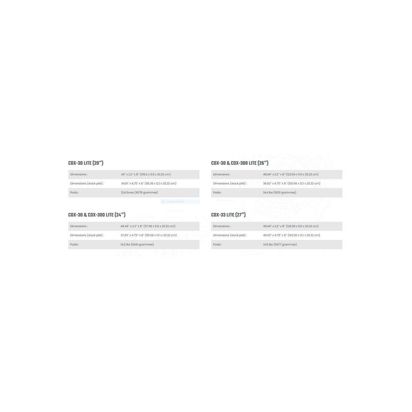 Les modèles CDX-30 LITE, CDX-300 LITE et CDX-33 LITE réunissent toutes les caractéristiques obligatoires dont un opérateur a besoin sur le terrain. Rien n'est laissé au hasard et chaque détail a été conçu pour offrir le meilleur système de sniper subminute à longue portée sur le marché. Les carabines de précision CDX-LITE seront votre partenaire le plus fiable. Souvent imités mais jamais égalés.