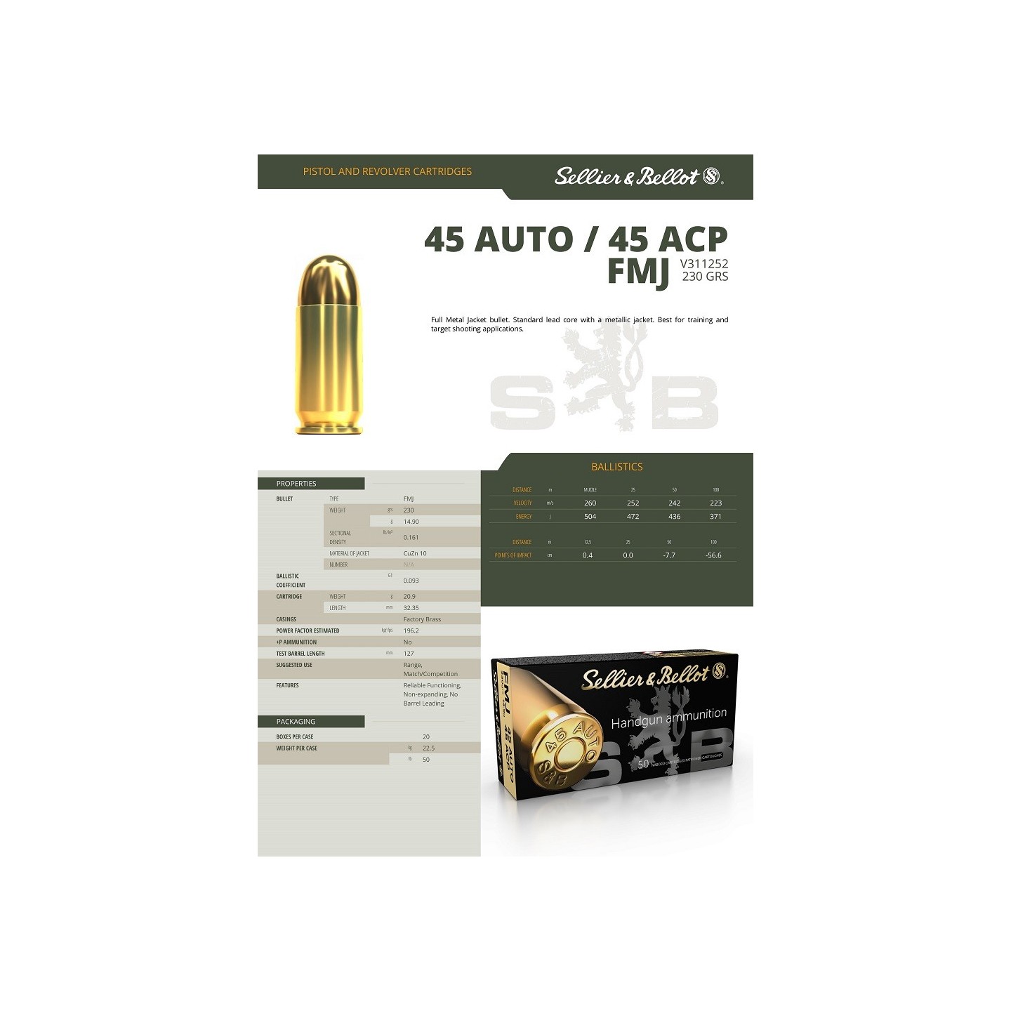 CARTOUCHES SELLIER BELLOT 45 ACP 230 GRS FMJ CAT B