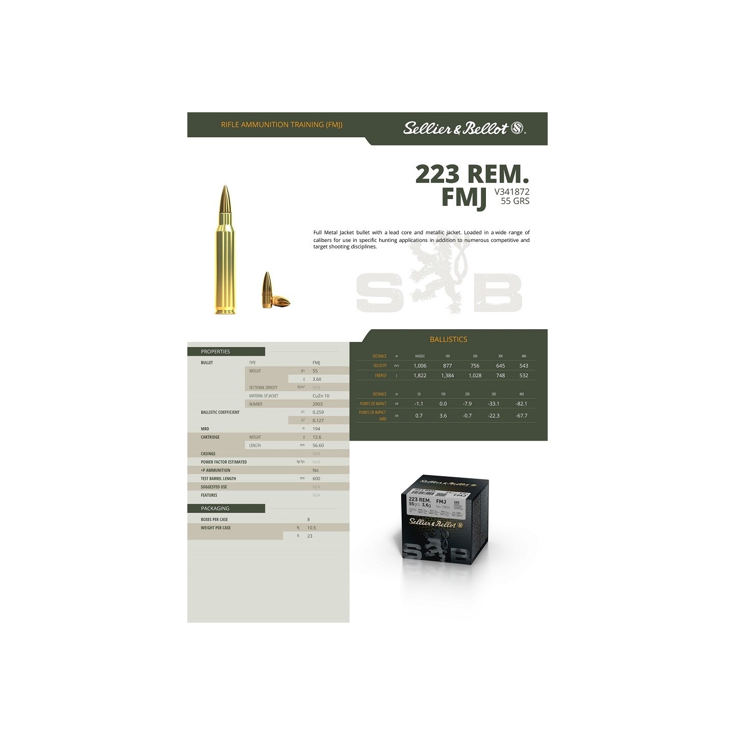 CARTOUCHES SELLIER BELLOT 223 REM 55 GRS FMJ CAT B