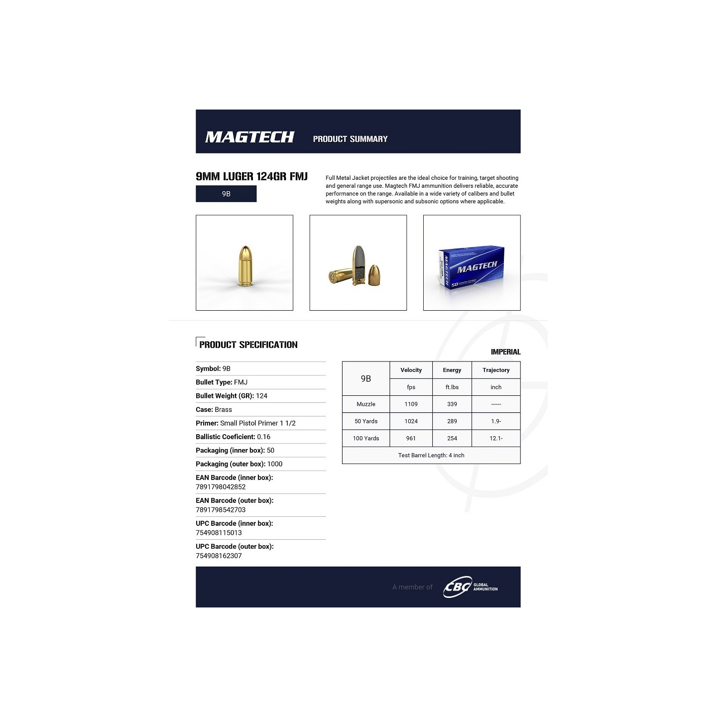 Les munitions Full Metal Jacket constituent le choix idéal pour l'entraînement, le tir sur cible et l'utilisation générale du champ de tir. Les munitions Magtech FMJ offrent des performances fiables et précises.