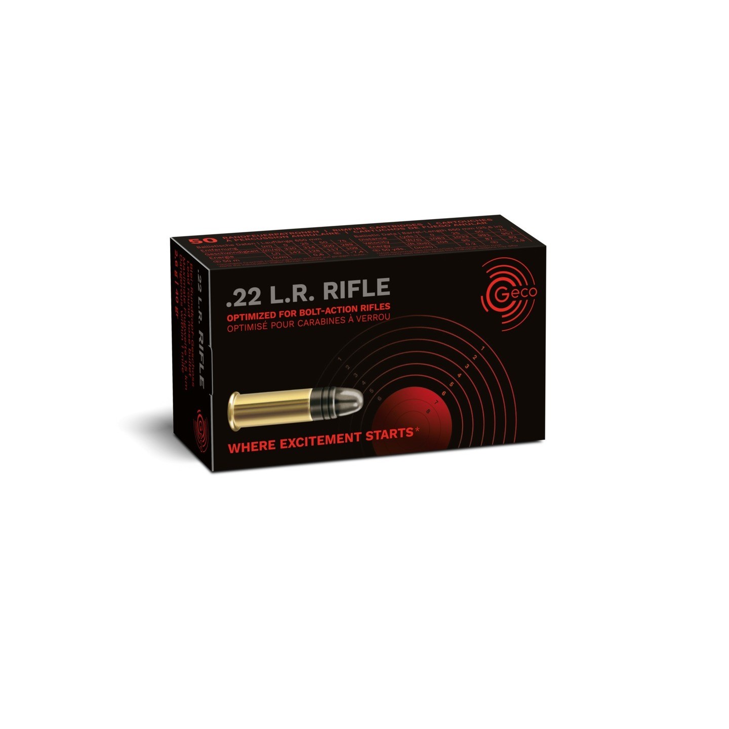 La performance au meilleur prixMunitions d’entrainement à budget limitéMunitions polyvalentes pour débutantsGECO Rifle : fonctionnement assuré dans les armes à verrouFonctionnement fiable dans les fusils à chargement automatique