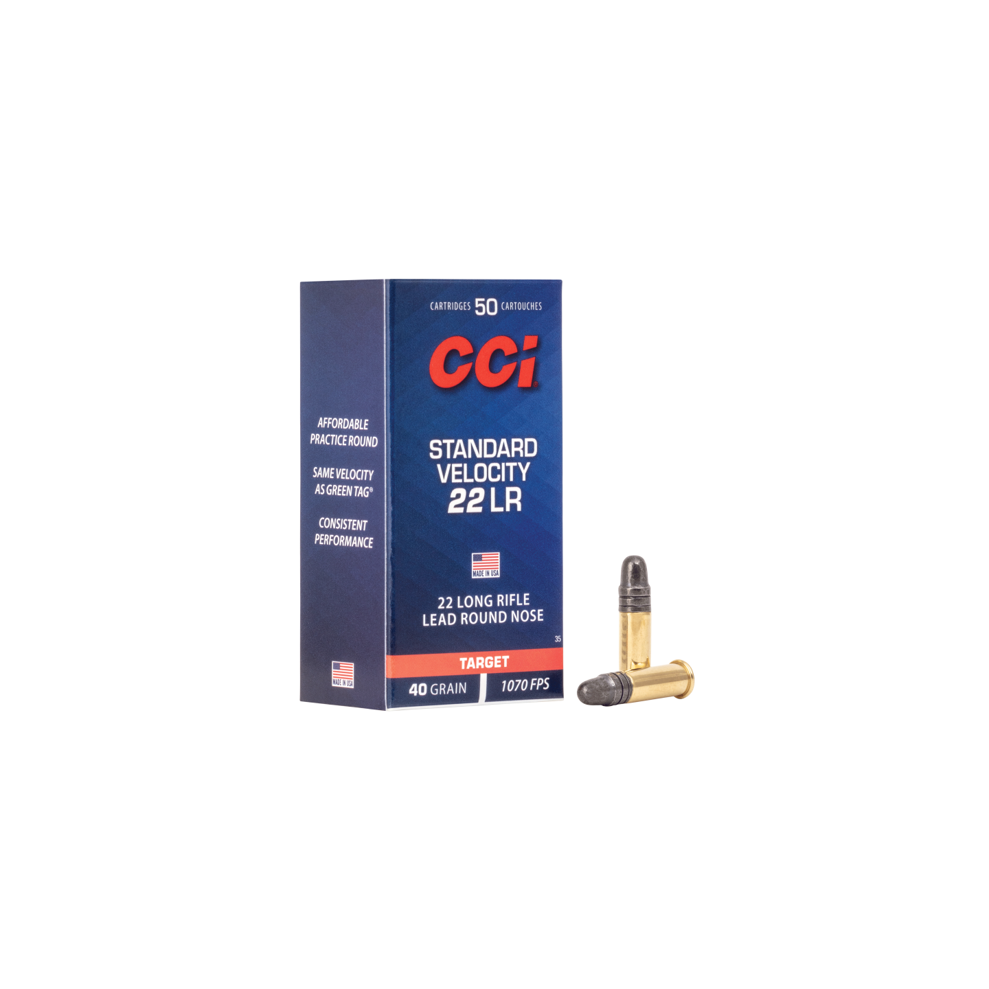 La CCI Standard Velocity 40 Grain offre une vitesse similaire à celle des munitions Green Tag® à un prix parfaitement adapté au tir d'entraînement. Elles garantissent la précision et la fiabilité grâce à une balle en plomb à tête ronde constante et à l'amorçage CCI® extrêmement fiable, associés à une douille en laiton de qualité.